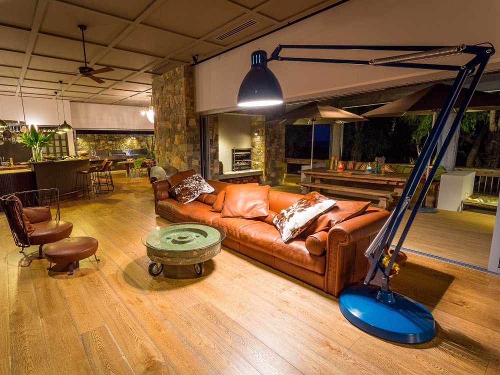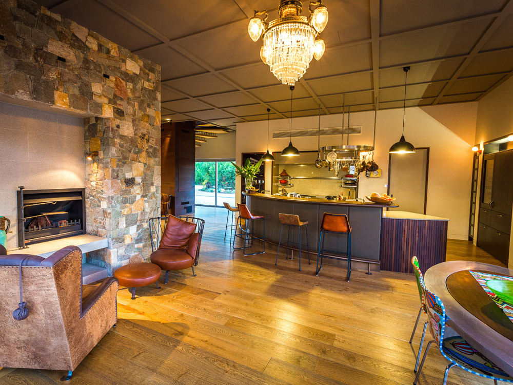 Casual open plan living that spills out onto decking and grassed areas that meet with the beach. Wood burning fires and an open kitchen designed for entertaining a crowd add to the beachy relaxed feel.
